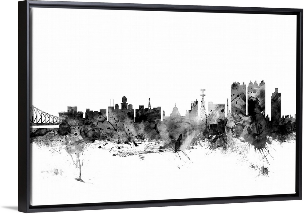 <p>Contemporary artwork of the Calcutta city skyline in black watercolor paint splashes.</p>