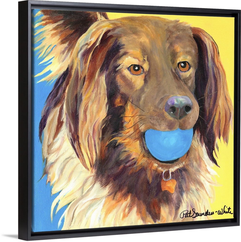 <p>brown dog with blue ball</p>