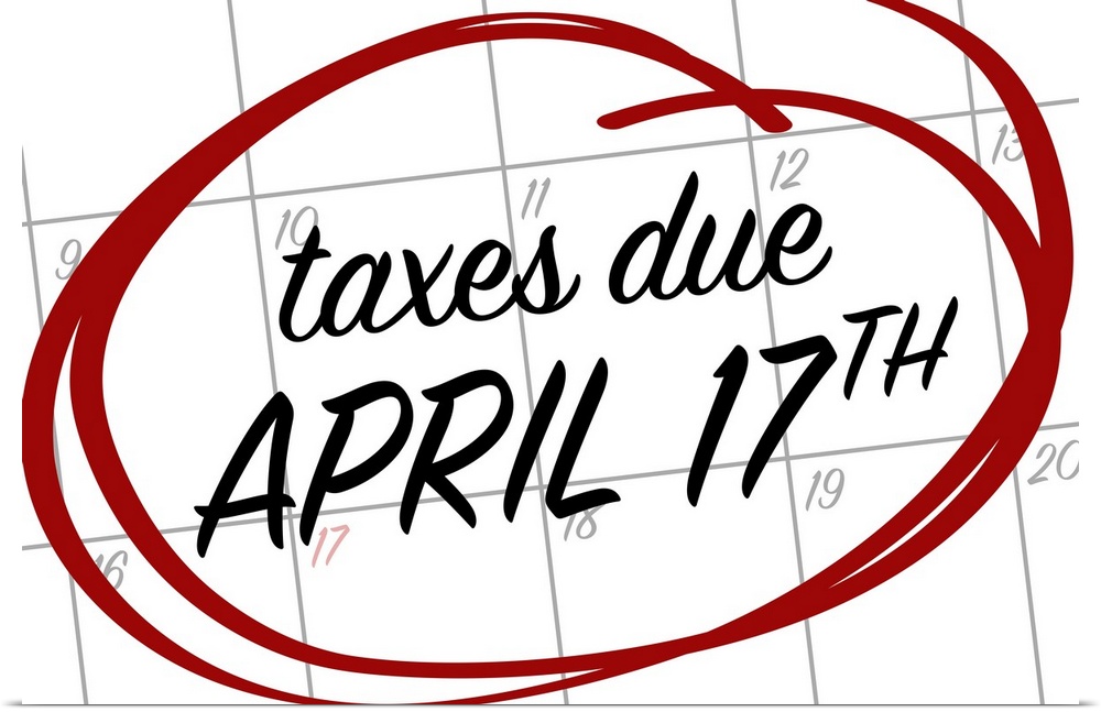 <p>Graphic art with "taxes due April 17th" circled in red on top of a calendar.</p>
