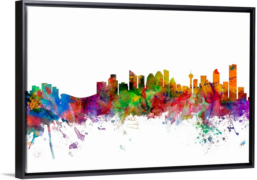 <p>Watercolor artwork of the Calgary skyline against a white background.</p>