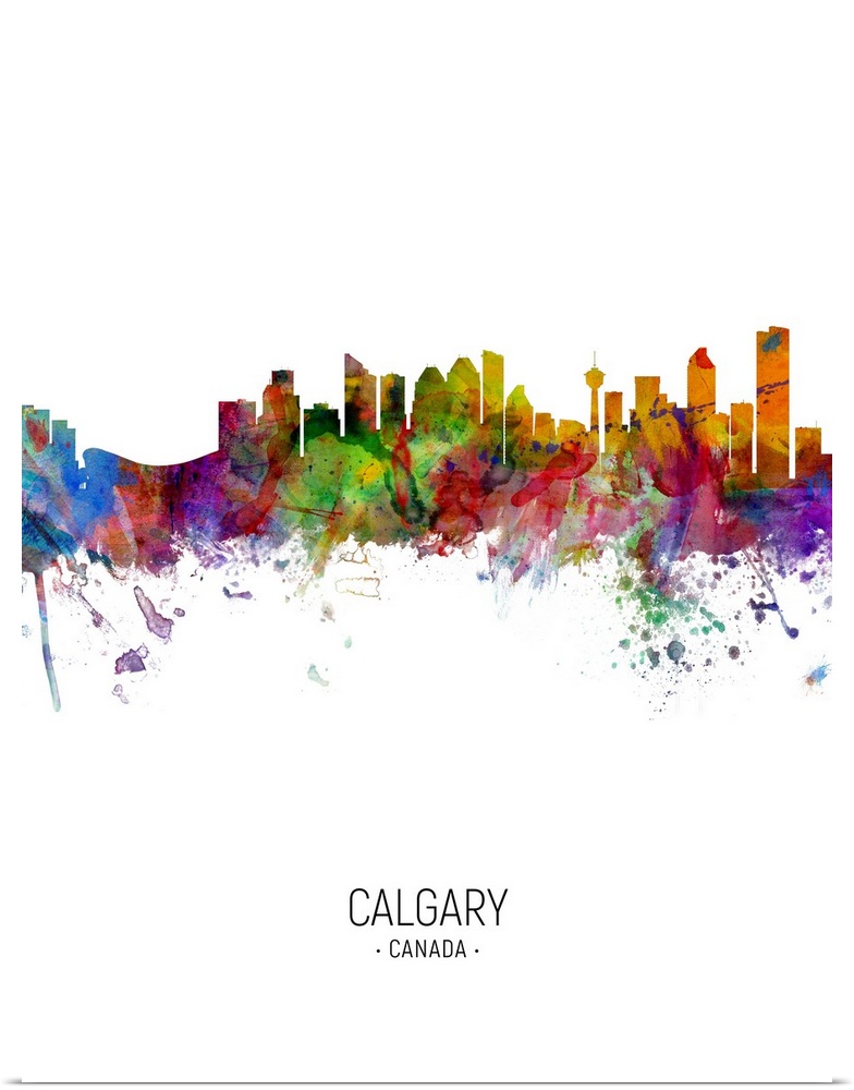 <p>Watercolor art print of the skyline of the city of Calgary, Alberta, Canada</p>