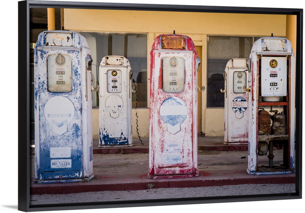 <p>USA: Southern California, CA Drought Spotlight 3-Rte 66 Expedition, Desert Center, abandoned gas pumps at truck stop off Rt 1777 near juncture with I-10, Colorado Desert (part of Sonoran Desert)</p>