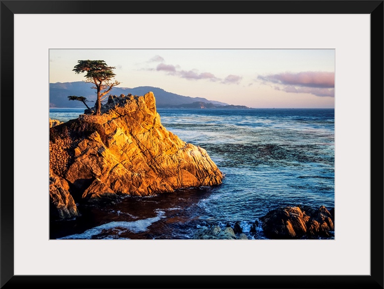 <p>California, Big Sur Coast, Pebble Beach, Lone Cypress Tree And Rugged Rock</p>