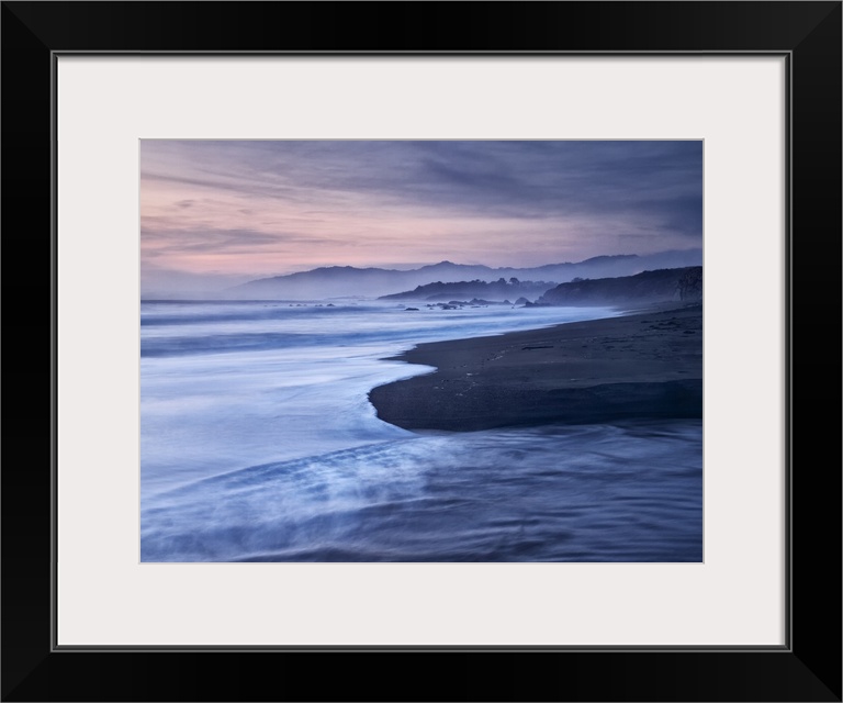 <p>USA, California, Cambria, Dusk at Moonstone Beach</p>