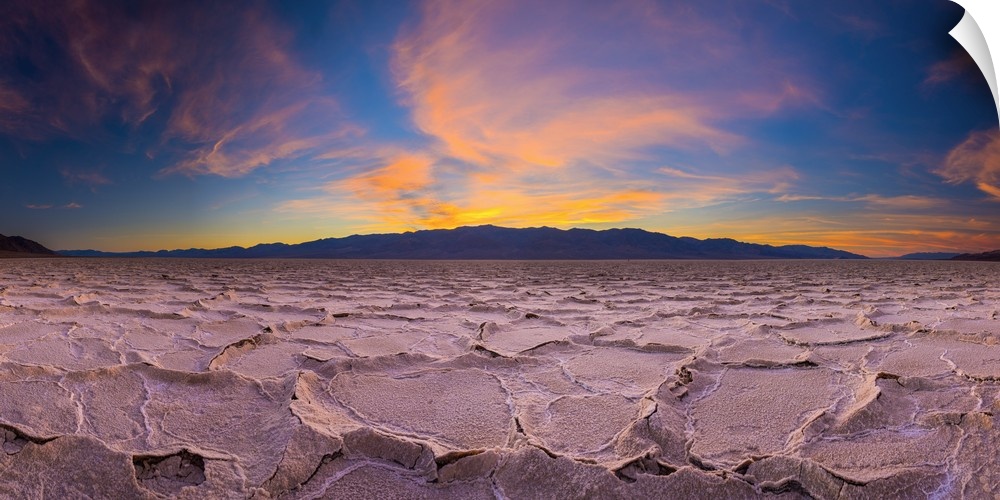 <p>USA, California, Death Valley National Park, Badwater Basin, lowest point in North America, salt crust broken into hexagonal pressure ridges.</p>