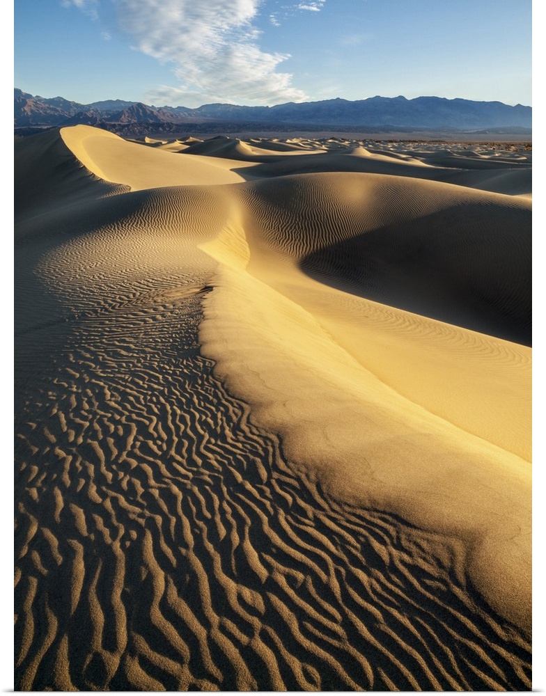 <p>USA, California, Death Valley National Park, Early morning sun hits Mesquite Flat Dunes</p>