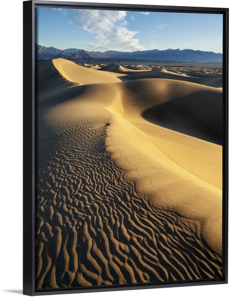 <p>USA, California, Death Valley National Park, Early morning sun hits Mesquite Flat Dunes</p>