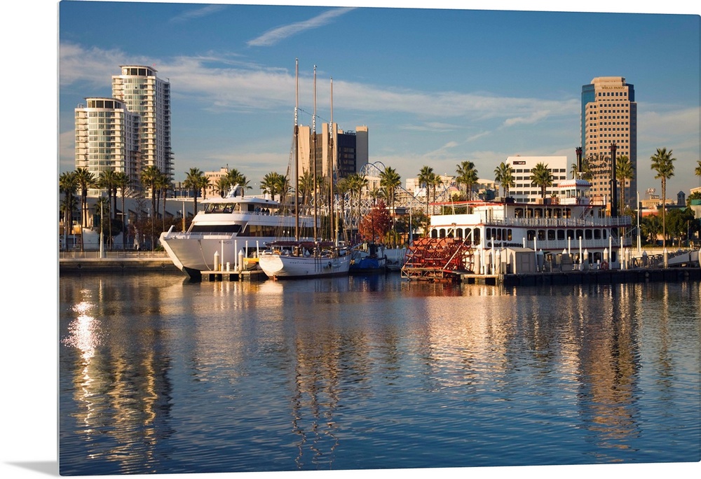 <p>USA, California, Long Beach, Shoreline Village, marina and city view</p>