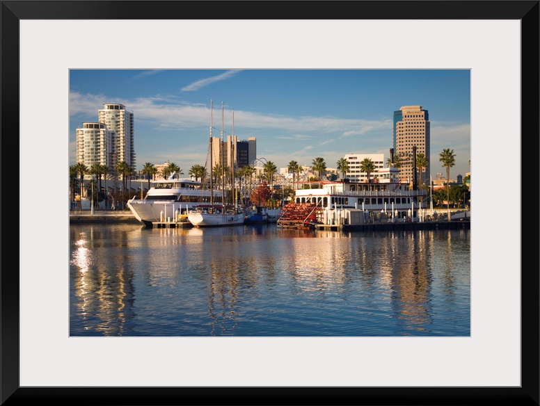<p>USA, California, Long Beach, Shoreline Village, marina and city view</p>