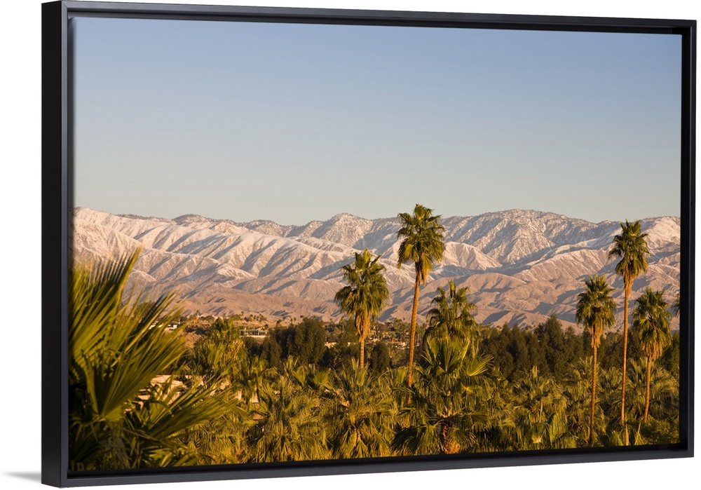 <p>USA, California, Palm Springs. Palms and San Bernardino Mountains, sunrise.</p>