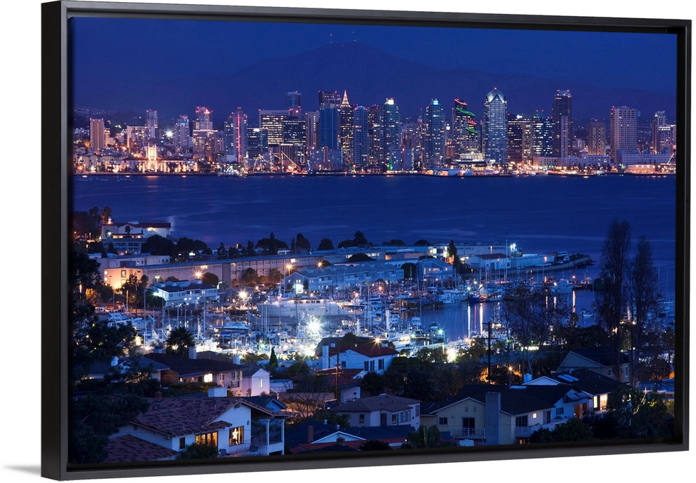 <p>USA, California, San Diego, City and Shelter Island Yacht Basin from Point Loma, dusk</p>