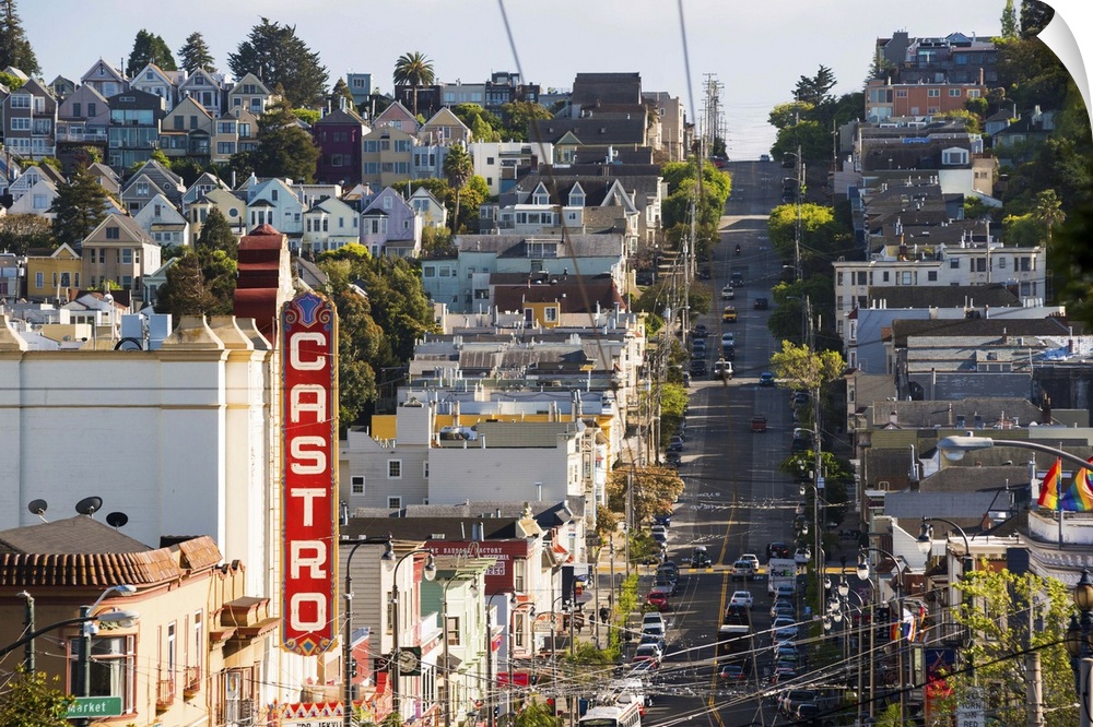<p>North America, USA, America, California, San Francisco, Aerial view of Castro street and the surrounding rooftops.</p>
