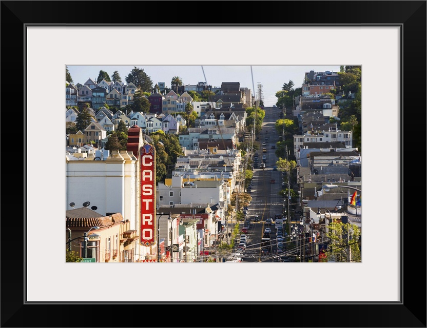<p>North America, USA, America, California, San Francisco, Aerial view of Castro street and the surrounding rooftops.</p>