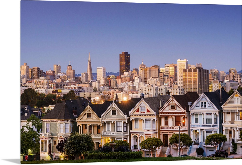 <p>North America, USA, America, California, San Francisco, Alamo Square, the painted ladys and city skyline.</p>