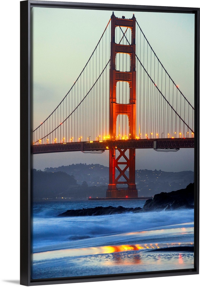 <p>USA, California, San Francisco, Golden Gate Bridge, View from Baker Beach at dusk.</p>