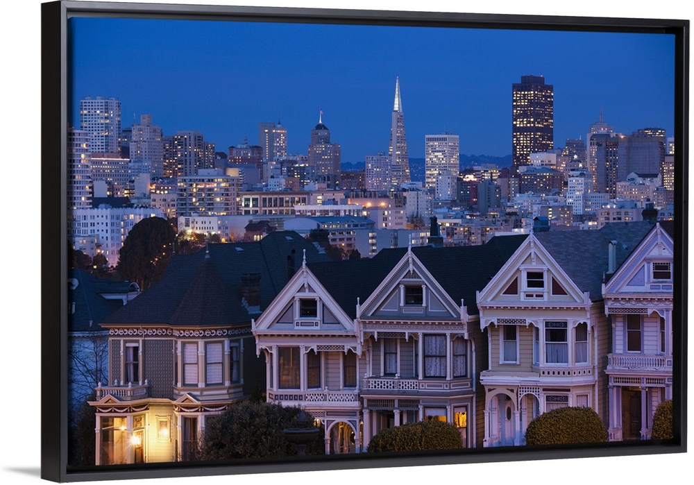 <p>USA, California, San Francisco, The Haight, houses at Alamo Square, dusk</p>