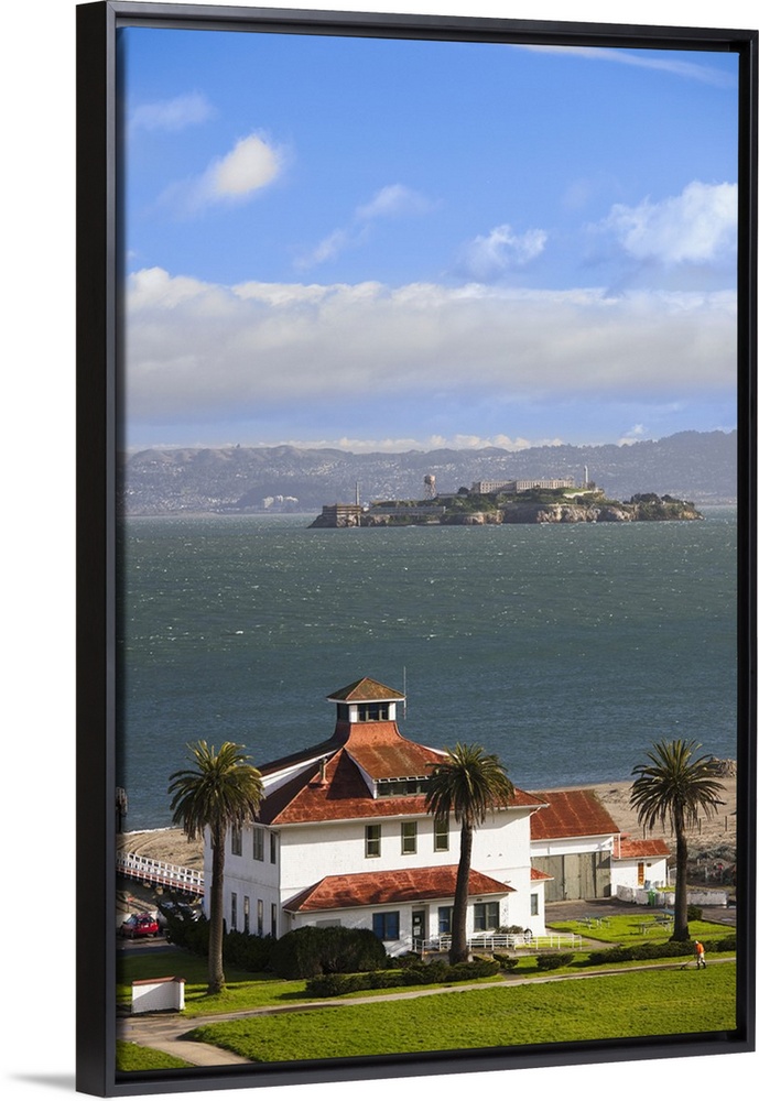<p>USA, California, San Francisco, The Presidio, Golden Gate National Recreation Area, Crissy Field Park Visitor Center, elevated view with Alcatraz Island</p>