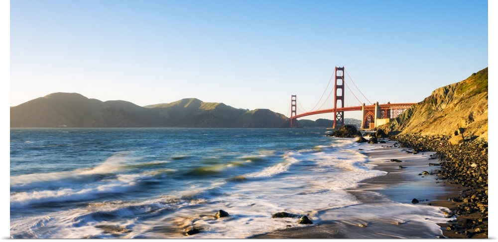 <p>North America, USA, America, California, San Francisco, View of the Golden Gate bridge from Marshalls beach.</p>