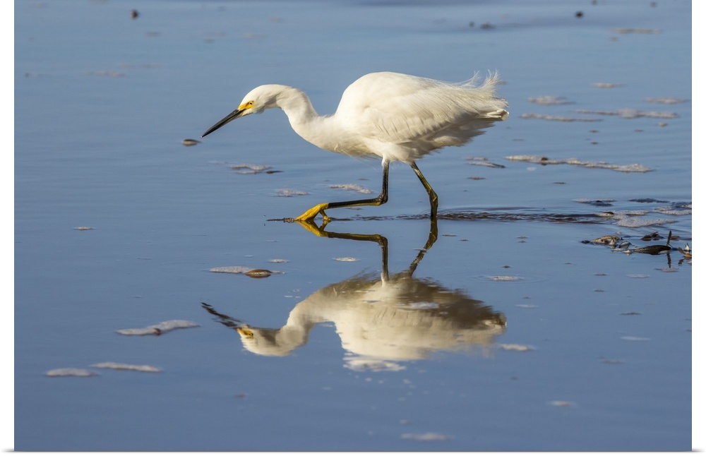 <p>USA, California, San Luis Obispo County. Snowy egret reflects in ocean water. Credit: Cathy & Gordon Illg / Jaynes Gallery</p>