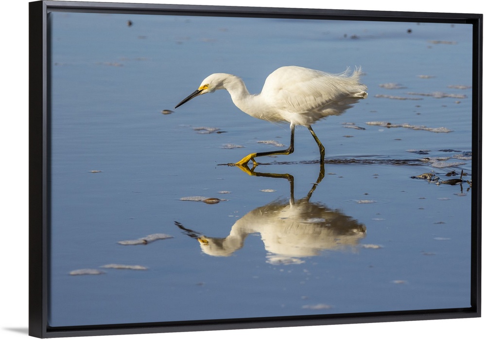 <p>USA, California, San Luis Obispo County. Snowy egret reflects in ocean water. Credit: Cathy & Gordon Illg / Jaynes Gallery</p>
