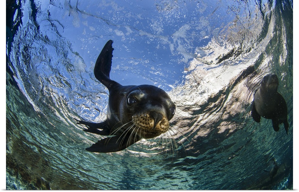 <p>California sea lion (Zalophus californianus) playing at surface at Los Islotes near La Paz, Baja California Sur at the Sea of Cortez.</p>