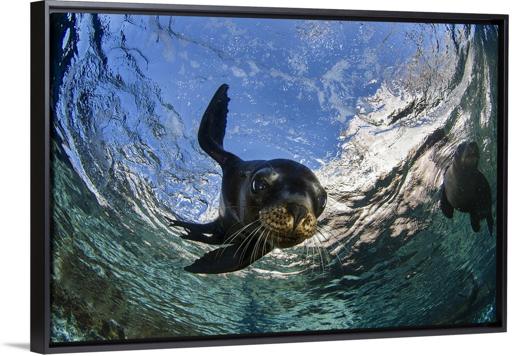 <p>California sea lion (Zalophus californianus) playing at surface at Los Islotes near La Paz, Baja California Sur at the Sea of Cortez.</p>
