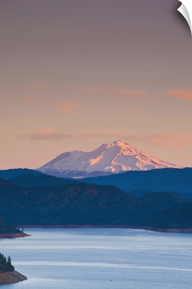 <p>USA, California, Northern California, Northern Mountains, Summit City, Shasta Lake and view of Mount. Shasta, dawn</p>