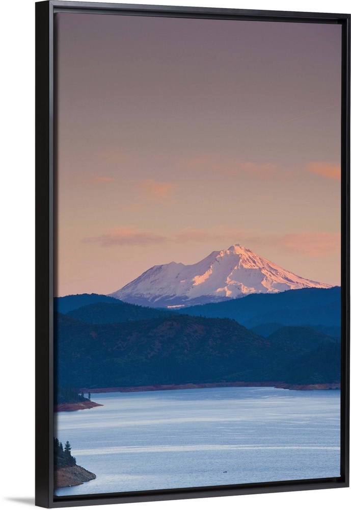 <p>USA, California, Northern California, Northern Mountains, Summit City, Shasta Lake and view of Mount. Shasta, dawn</p>