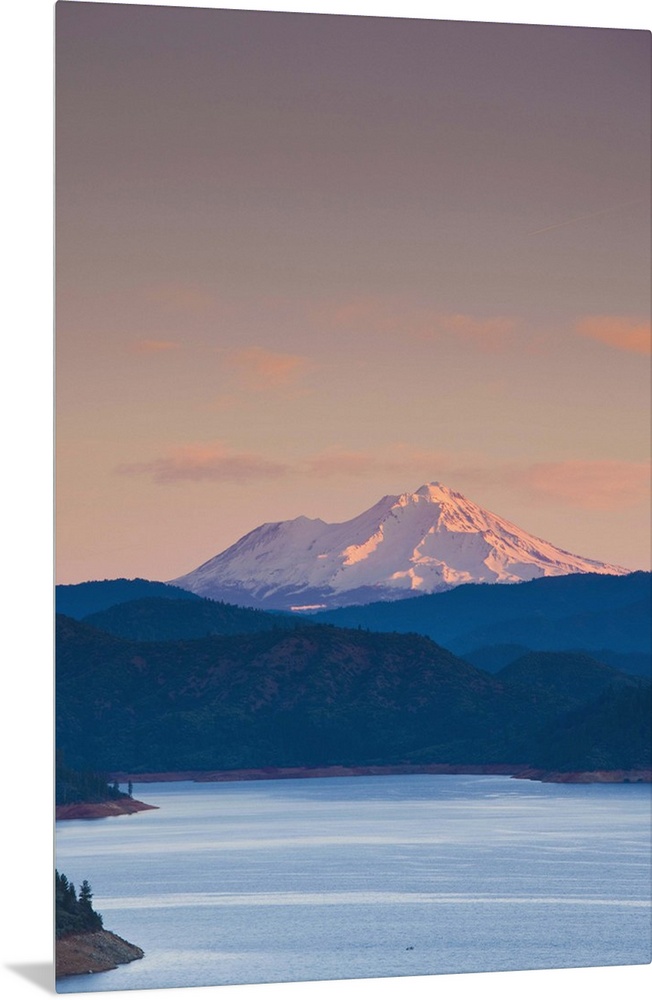 <p>USA, California, Northern California, Northern Mountains, Summit City, Shasta Lake and view of Mount. Shasta, dawn</p>