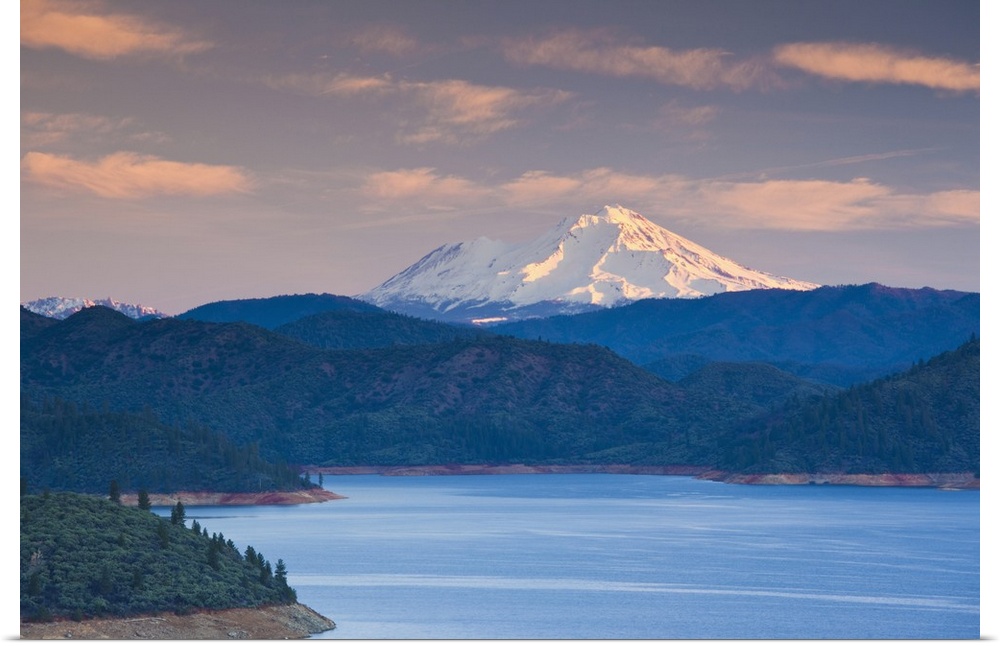 <p>USA, California, Northern California, Northern Mountains, Summit City, Shasta Lake and view of Mount. Shasta, dawn</p>