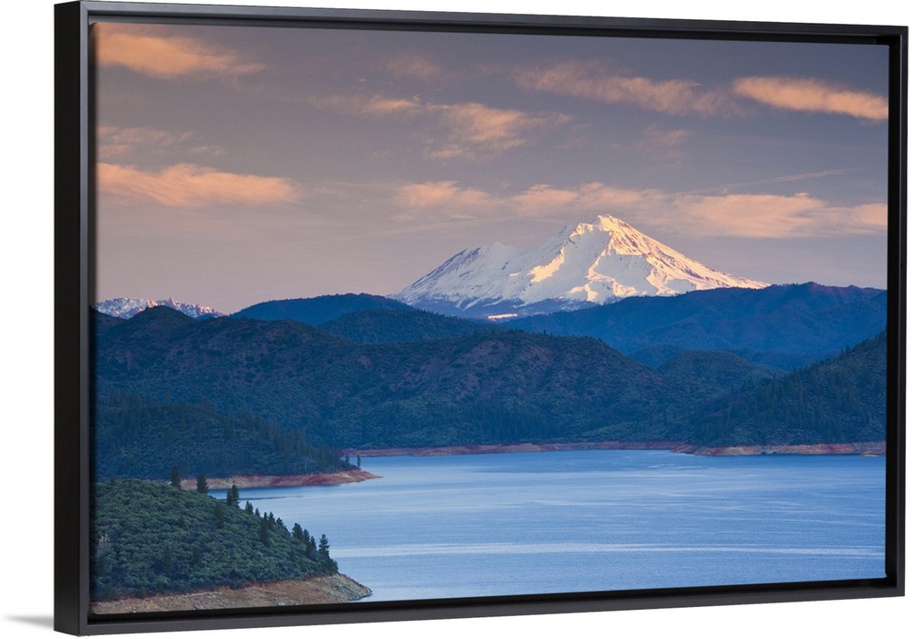 <p>USA, California, Northern California, Northern Mountains, Summit City, Shasta Lake and view of Mount. Shasta, dawn</p>