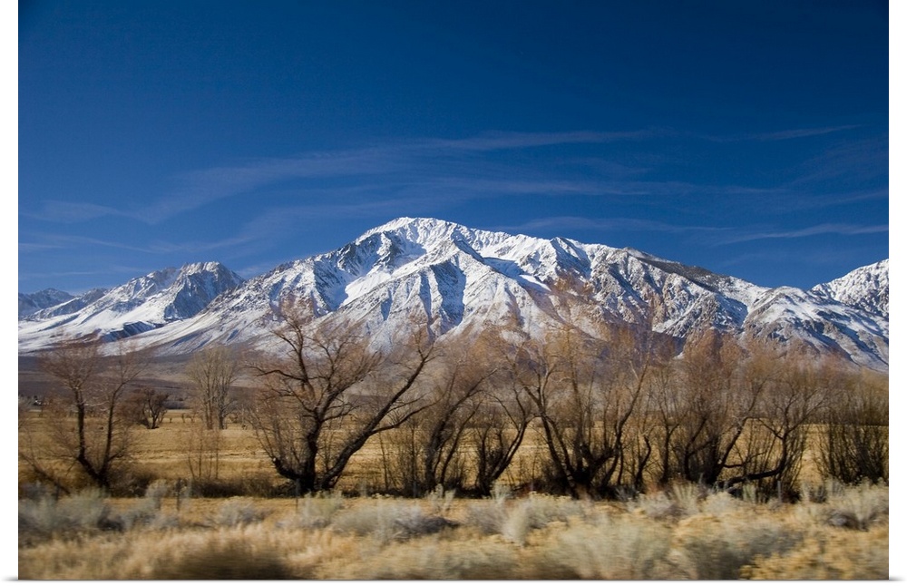 <p>California, USA. Stunning roadside views of snowcapped Sierra Nevada Mountains outside of Mammoth Mountain.</p>