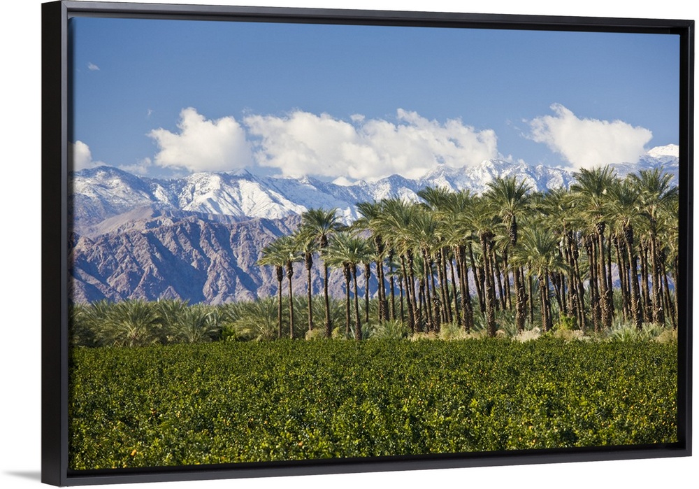<p>USA, California, Thermal. Palm grove and San Jacinto Mountains, winter.</p>