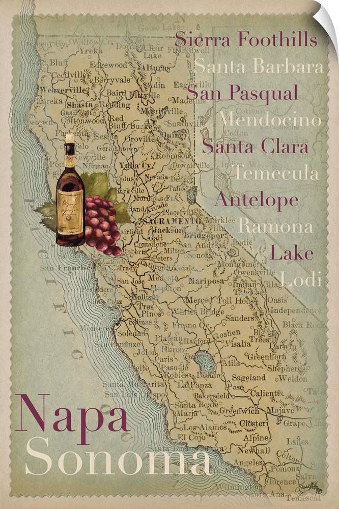 Art Restaurant Pub and Bar Wall Art Decorative Art Food and Drink Drinks Wine Maps Elizabeth Medley Painting Napa Valley