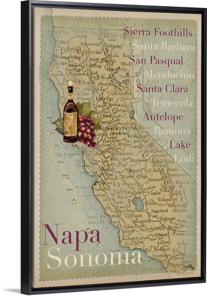 Art Restaurant Pub and Bar Wall Art Decorative Art Food and Drink Drinks Wine Maps Elizabeth Medley Painting Napa Valley