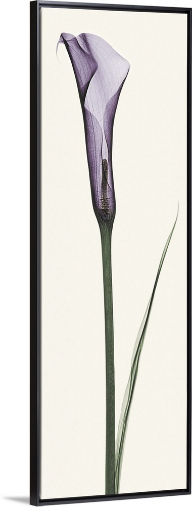 <p>X-Ray photograph of a purple calla lily against a white background.</p>