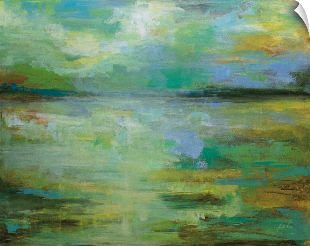 <p>Contemporary painting of a stream running through a landscape.</p>