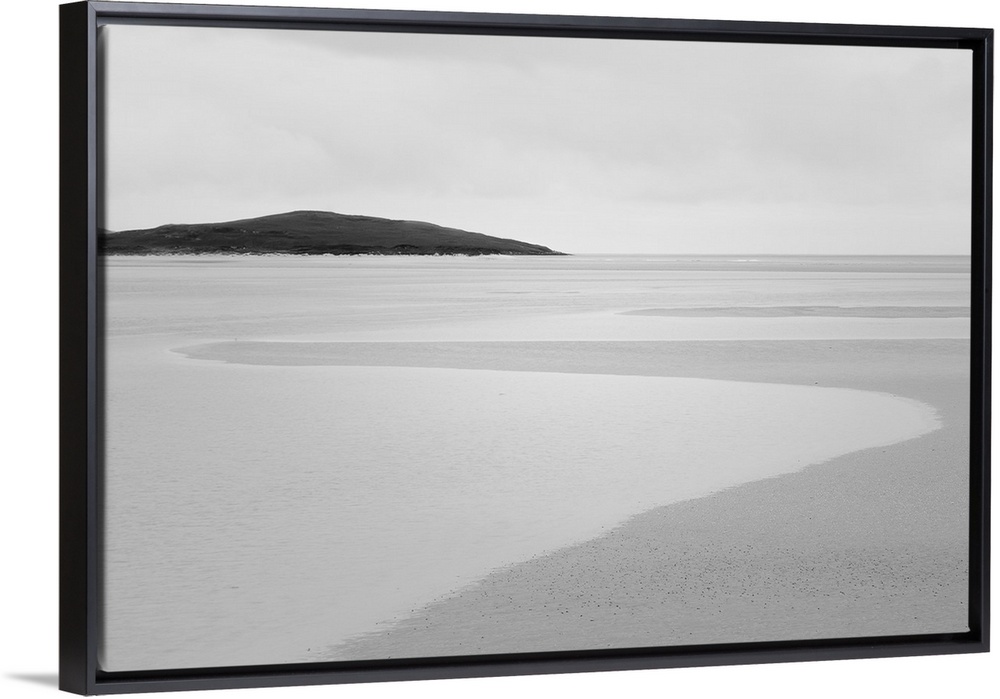 <p>Black and white photograph of Luskentyre sands in Scotland.</p>
