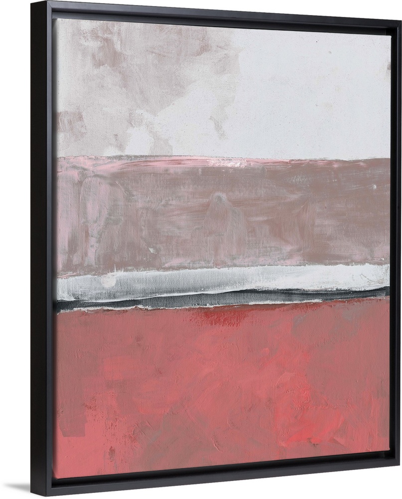 <p>Abstract color block artwork in shades of coral pink and pale grey.</p>