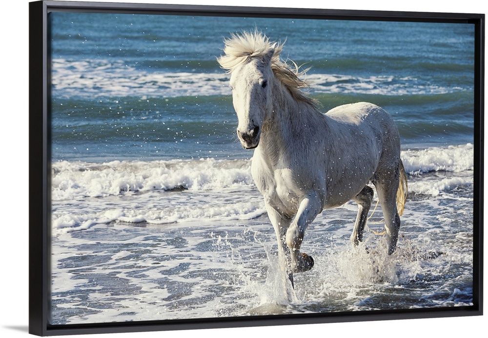 <p>Camargue Horse running on the beach, South of France, France</p>