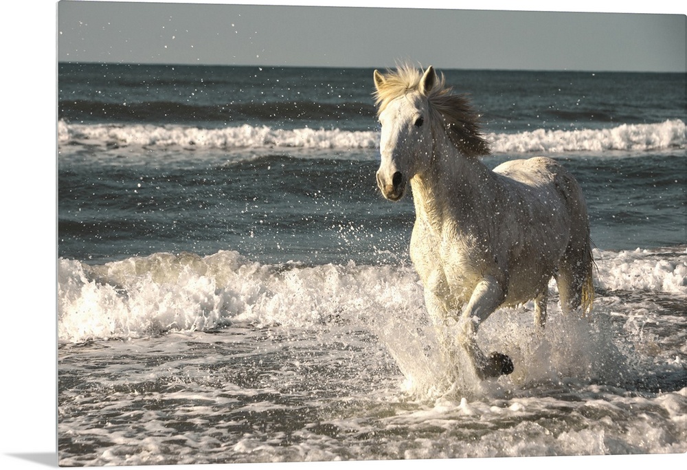 <p>Camargue Horse running on the beach, South of France, France</p>