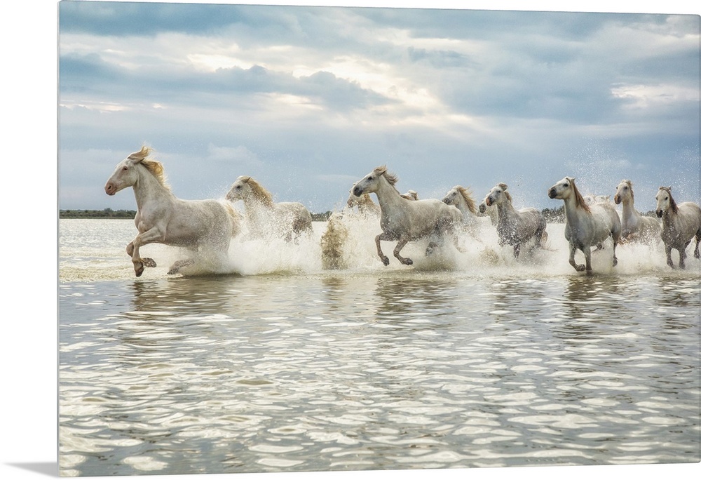 <p>The white horses of the Camargue running on the beach in the south of France.</p>