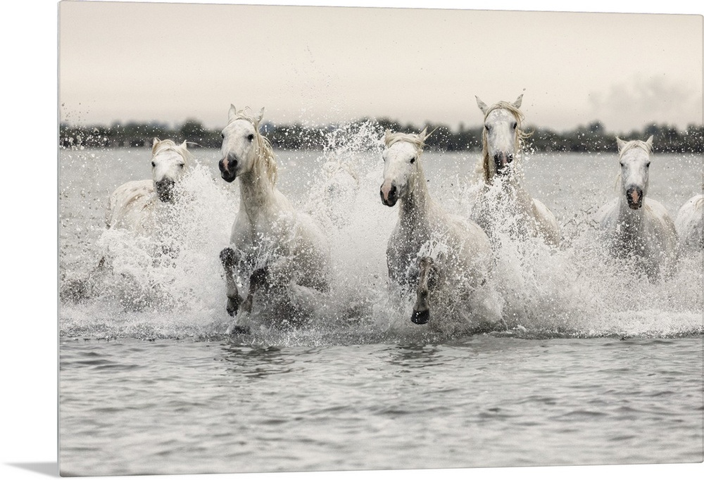 <p>The white horses of the Camargue on the beach in the south of France.</p>