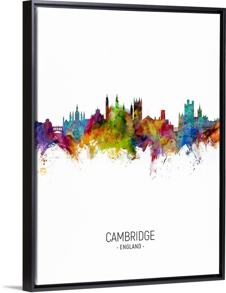 <p>Watercolor art print of the skyline of Cambridge, England, United Kingdom</p>