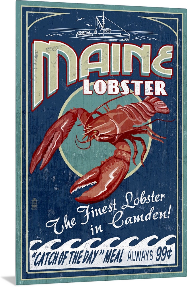 <p>Retro stylized art poster of a vintage seafood market sign displaying a lobster.</p>