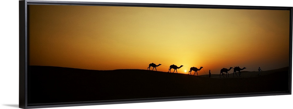 <p>Camels and men in the desert of India</p>