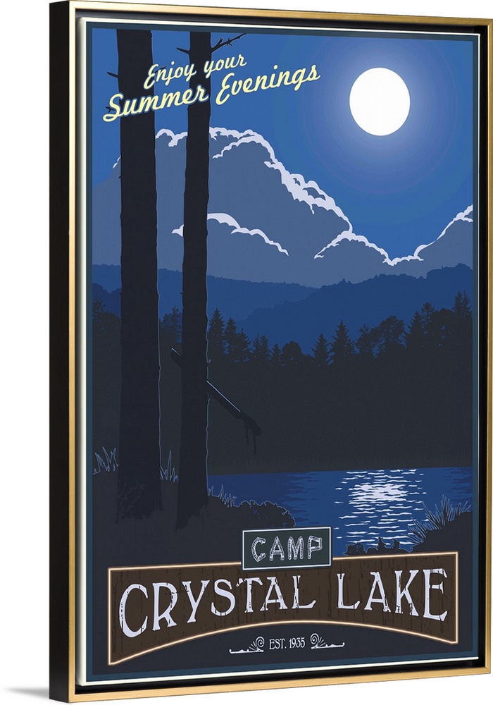 Art Blue Wall Art Camping Contemporary Art Graphic Art Landscapes Lake Moon Retro Art Steve Thomas Travel Posters Fictional Travel Posters