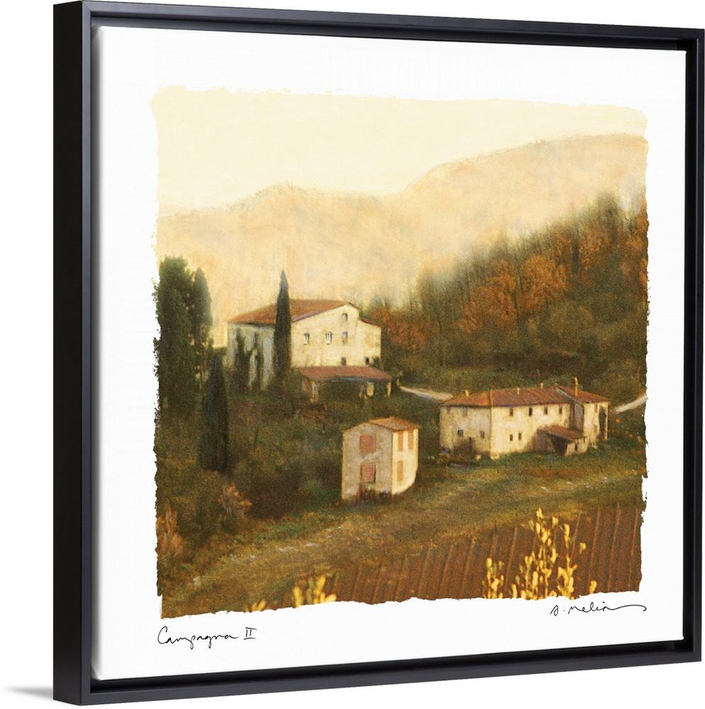 <p>This is a living room or wall docor by a contemporary artist of the Italian country side in a square shaped composition with the artist signature and art work title around the edges.</p>