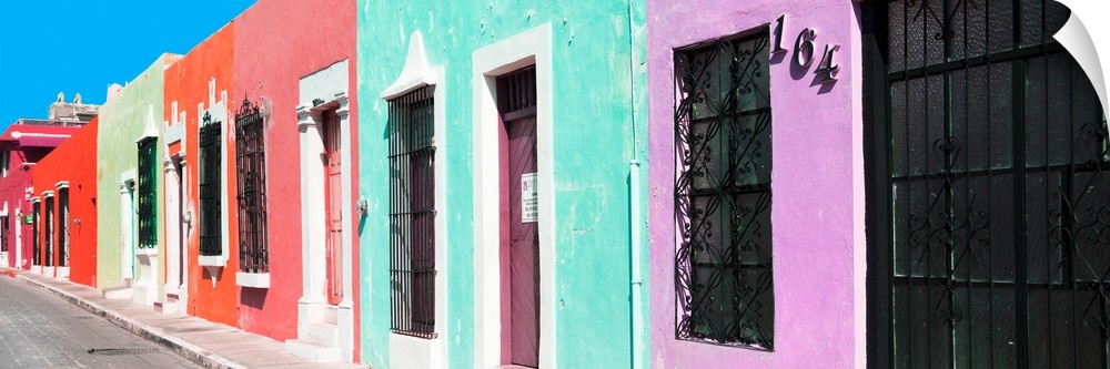 <p>Panoramic photograph of a colorful street scene in Campeche, Mexico. From the Viva Mexico Panoramic Collection.</p>