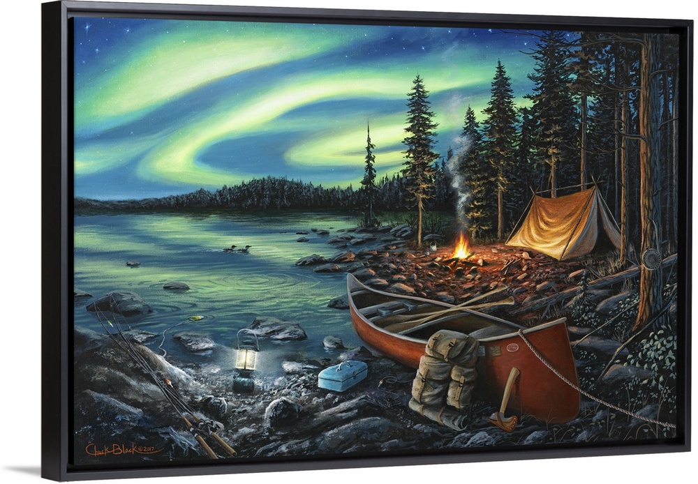 Art Chuck Black Camping Contemporary Art Landscapes Lake House Art Landscapes Lake Skyscapes Northern Lights Trees Forest Painting Transportation Boat